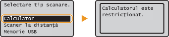 Dacă este bifată căsuţa [Scan], scanarea documentelor către dispozitive de memorie USB este dezactivată. De asemenea, puteţi scana documentele de pe computer prin <Computer> şi <Scaner la distanţă>. Totuşi, puteţi dezactiva scanarea documentelor către calculator doar pentru toate ID-urile de departament. (Blocarea lucrărilor când ID Departament este necunoscut).