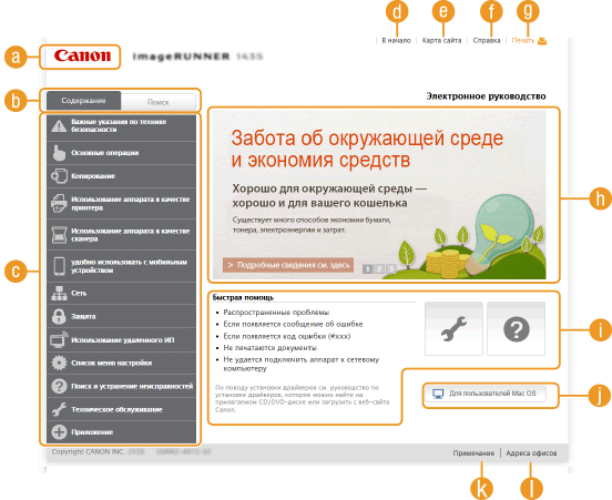 Служит для просмотра всех тем документа Электронное руководство пользователя.
