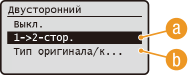 (2-стор./Копир. ИД-карты) <Двусторонний>, вместо того чтобы выбирать <2-сторонняя> согласно процедуре, приведенной ниже. |