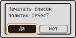 Можно выполнить печать списка, чтобы проверить имена политик и настройки IPSec, зарегистрированные на аппарате.