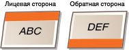 Настройку этого параметра можно указать в сочетании с настройками <Смещение длинного края (Передн.)>, <Смещение короткого края (Задн.)> и <Смещение длинного края (Задн.)>. Если указаны все четыре параметра, позиция печати смещается, как показано на следующей иллюстрации.