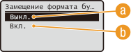 <Формат бум. по умолч.> и <Тип бумаги по умолч.> нельзя указать отдельно. Укажите формат бумаги на экране <Формат бум. по умолч.>, затем укажите тип бумаги на экране <Тип бумаги по умолч.>.