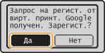 Можно также зарегистрировать аппарат через мобильное устройство или Google Chrome*. Экран аппарата показывает следующий экран подтверждения перед завершением регистрации. Нажмите <Да> для завершения регистрации.
