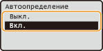 Выберите <Вкл.> и нажмите . Аппарат определит и автоматически настроит режим связи и допустимый тип Ethernet.