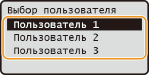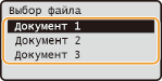 Если в памяти аппарата хранятся защищенные документы более чем двух пользователей, перед экраном <Выбор файла> отображается экран <Выбор пользователя>. Используя