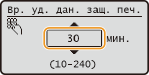 При покупке аппарата на нем установлено значение допустимого времени для хранения защищенных документов (от момента получения до момента печати), которое равно 30 минутам. Это значение можно изменить.