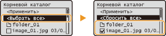 Чтобы снять выбор, выберите <Сбросить все> и нажмите