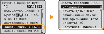 Указание параметров печати только для файлов JPEG/TIFF