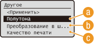 Можно выбрать способ печати для передачи полутонов (переходы между темными и светлыми частями изображения) для оптимального качества изображения. С помощью клавиш