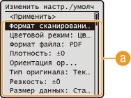 Аппарат поставляется с предварительно заданными заводскими настройками по умолчанию (Список меню настройки). Можно изменить и установить следующие настройки по умолчанию в соответствии с индивидуальными требованиями.