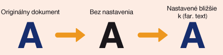 Pri skenovaní farebných dokumentov môžete nastaviť farbu čierneho textu tak, aby sa čo najviac podobal originálu alebo môžete nastaviť zreteľnosť čierneho textu na jeho zreteľnejšie čítanie.