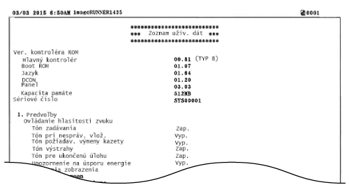 Tento zoznam neobsahuje informácie o nastavení pre voľbu <Nastavenia siete> a <Nastavenia správy systému>. Ak chcete skontrolovať všetky položky nastavení, vytlačte zoznam dát správcu systému.