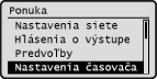 Všetky nastavenia časovača sú uvedené s krátkymi opismi. Predvolené nastavenia sú označené krížikom (