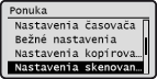 Všetky nastavenia skenovania sú uvedené s krátkymi opismi. Predvolené nastavenia sú označené krížikom (