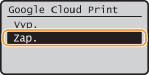 Ak chcete funkciu Google Cloud Print deaktivovať, vyberte možnosť <Vyp.>.