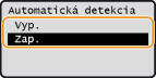 . Stroj rozpozná a automaticky nastaví režim komunikácie a typ siete Ethernet, ktorý sa dá použiť.
