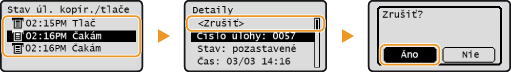 Zrušenie zo vzdialeného URTlač môžete zrušiť zo stránky [Job Status] na Remote UI (Vzdialené UR): Kontrola aktuálneho stavu tlačených dokumentov