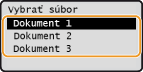 Ak sú v pamäti zabezpečené dokumenty od dvoch alebo viacerých užívateľov, zobrazí sa obrazovka <Vybrať používateľa> (pred obrazovkou <Vybrať súbor>). Použite