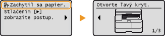 Ak sa zachytí papier, na obrazovke sa zobrazí správa <Zachytil sa papier.>. Stlačte