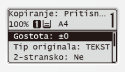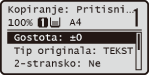 , se prikaže glavni zaslon izbrane funkcije. Kot primer je spodaj prikazan glavni zaslon za funkcijo kopiranja.