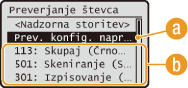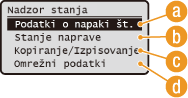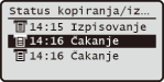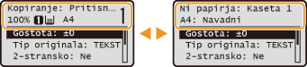 Prikaže trenutno stanje izbrane postavke. Kot primer je spodaj prikazan zaslon <Status kop./tiskanja>.