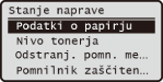 Prikaže stanje stroja, na primer količino preostalega papirja ali tonerja.
