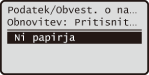 Sporočila se prikažejo na vrhu zaslona, npr. če zmanjka papirja ali ko je kartuša s tonerjem skoraj prazna. Na zaslonu se izmenično prikazujeta običajni zaslon in sporočilo.