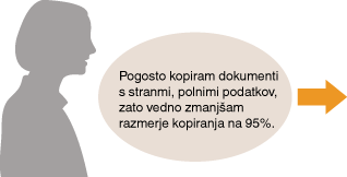 Spremenite razmerje kopiranja na 95 % in to registrirajte kot privzeto nastavitev. Odslej lahko kopirate brez spreminjanja razmerja kopiranja. Sprememba privzetih nastavitev kopiranja