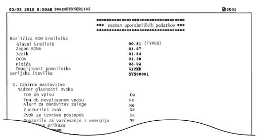 Ta seznam ne vključuje podatkov o nastavitvah za <Omrežne nastavitve> in <Nastavitve upravljanja sistema>. Če želite preveriti vse nastavitve, izpišite seznam podatkov ureditve sistema.
