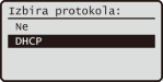 Če za dodeljevanje naslova IP ne želite uporabiti DHCP Izberite <Izključeno>. Če izberete <DHCP>, ko storitev DHCP ni na voljo, stroj išče storitve v omrežju in to pomeni dodatno nepotrebno komuniciranje. |