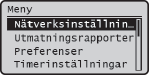 visas skärmen <Meny>. På den här skärmen kan du ange allmänna enhetsinställningar som <Gemensamma inställningar> och <Timerinställningar>, men även många inställningar för respektive funktion, t.ex. kopiering och scanning.