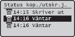 Visar aktuell status för valt objekt. Skärmen <Status kop./utskr.jobb> visas nedan som ett exempel.