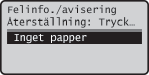 I vissa fall visas anvisningar om hur du ska åtgärda felet. Följ anvisningarna på skärmen för lösa problemet. Skärmen som visas när ett pappersstopp inträffar visas nedan som ett exempel (