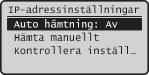 Om <På> visas väljer du <Autohämtning>   och ställer in både <Välj protokoll> och <Auto-IP> på <Av>.