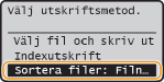 Om du väljer <Datum/tid (stigande)> eller <Datum/tid (fallande)> sorteras filerna baserat på ändringsdatum och -tid.