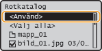 Om en mapp på ett USB-minne har många filer, kan scanningen av filer för utskrift ta längre tid. Använd datorn för att ta bort onödiga filer på USB-minnet eller flytta filerna till en annan mapp.