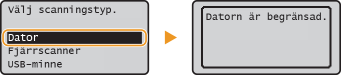 Om kryssrutan [Scanna] har markerats inaktiveras skanning av dokument till USB-minnesenheter. Du kan också begränsa skanning av dokument till datorer via <Dator> och <Fjärrscanner>. Du kan emellertid bara begränsa scanning av dokument till datorer för alla avdelnings-ID. (Blockera jobb när avdelnings-ID är okänt).