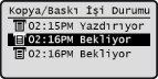 Seçilen öğenin geçerli durumunu görüntüler. <Kopya/Baskı İşi Durumu> ekranı aşağıda örnek olarak gösterilmektedir.