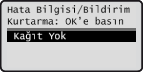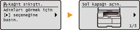 Hata oluştuğu bazı durumlarda, hataya nasıl yanıt verileceğine ilişkin talimatlar görüntülenir. Sorunu çözmek için ekrandaki talimatları izleyin. Bir kağıt sıkışması oluştuğunda görüntülenen ekran aşağıda örnek olarak verilmiştir (