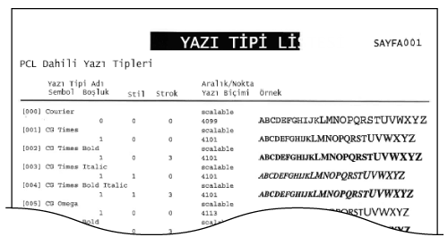 PCL modunda kullanılabilir olan yazı tiplerini kontrol etmek için bir liste yazdırabilirsiniz.