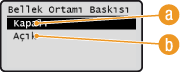 <Kapalı> seçeneğini seçin ve