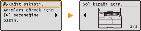 Kağıt sıkışırsa, ekranda <Kağıt sıkıştı.> görüntülenir. Basit ekran üzeri çözümleri görüntülemek için