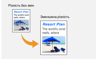 Можна налаштувати різкість зісканованого зображення. Збільште різкість, щоб збільшити різкість тексту та ліній, або зменште її, щоб покращити зовнішній вигляд фотографій із журналу.