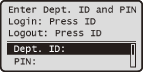 وفي حالة عرض شاشة تسجيل الدخول أدناه، يجب مصادقة نفسك قبل استخدام الفاكس أو وظيفة المسح الضوئي.