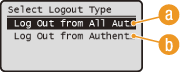 للتبديل إلى وظيفة أخرى من الوظيفة التي تستخدمها حاليًا، يتم عرض شاشة تأكيد تسجيل الخروج أدناه. لتسجيل الخروج من الإرسال المعتمد (الفاكس أو وظيفة المسح الضوئي)، استخدام / لتحديد <Yes>ثم اضغط على .![]() |