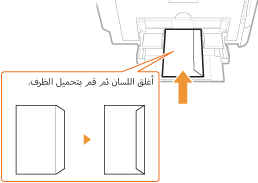 تأكد من تسوية أي التفافات على الأظرف قبل تحميلها. انتبه أيضًا لاتجاه الأظرف وللوجه الذي ينبغي توجيهه لأعلى. قم بتحميل الأظرف في الدرج متعدد الأغراض. لا يمكنك تحميلها في درج الورق.