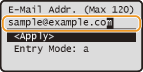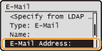 وفقًا للمحتوى المسجل في خادم LDAP، فإنه سيتم إدخال اسم المستخدم ورقم الفاكس/عنوان البريد الإلكتروني الخاص بالوجهة المحددة التي تم تسجيلها في الخادم LDAP بشكل تلقائي.