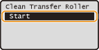 عندما تصبح بَكرة النقل داخل الجهاز متسخة، فإن جودة الطباعة قد تنخفض أو قد تظهر نقاط على المطبوعات. في حالة حدوث ذلك، اتبع الإجراءات أدناه لتنظيف بَكرة النقل. لاحظ أنه لا يمكنك تنظيف بَكرة النقل عند وجود مستندات قيد انتظار الطباعة بالجهاز.