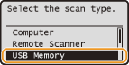 .يتم حفظ البيانات الممسوحة ضوئيًا في جهاز ذاكرة USB.
