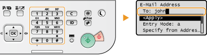 لا يمكن استخدام مفاتيح الأرقام إلا عند تحديد أول وجهة. إذا كنت تريد تحديد أية وجهات إضافية، فاستخدام دفتر العناوين أو خادم LDAP. لتحديد وجهات كعناوين Cc أو Bcc، ينبغي عليك استخدام دفتر العناوين.